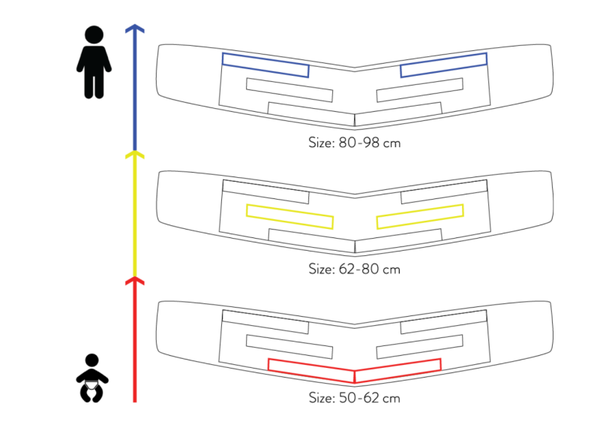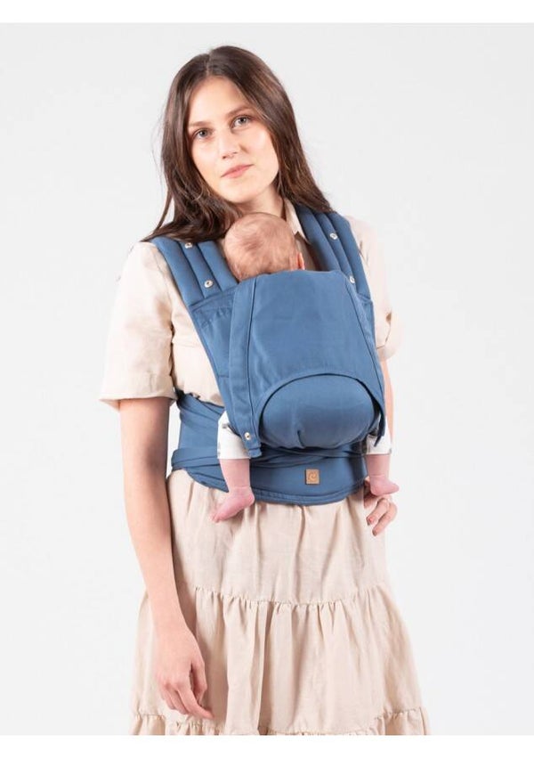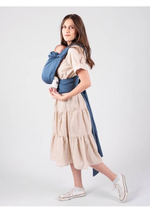 De heupband sluit je eenvoudig met een gesp, de schouderbanden kruis je op je rug en knoop je. Als het rugpand niet meer van knie tot knie ondersteunt, kun je de drager verbreden door de schouderbanden breed onder de bovenbeentjes van je kindje te knopen.